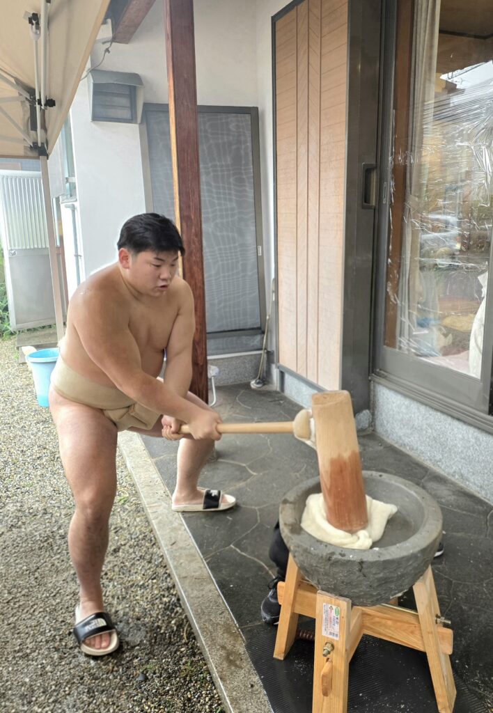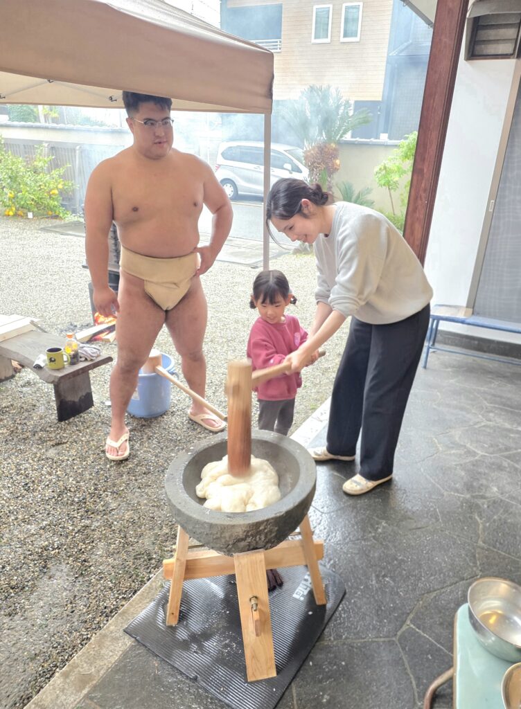 お相撲さんがついたお餅は粘り気とコシが強く、ひと味違う美味しさになると評判です。